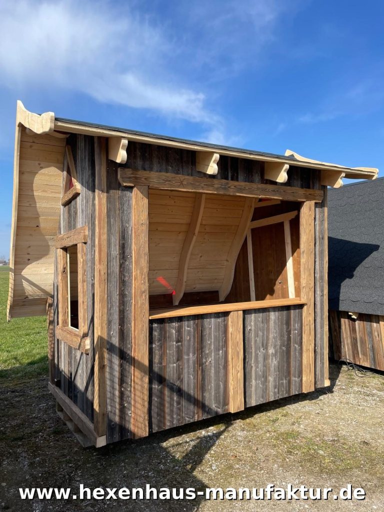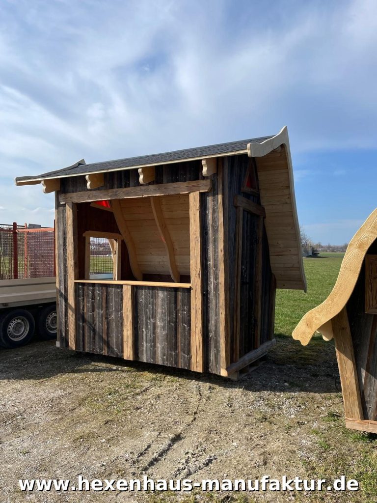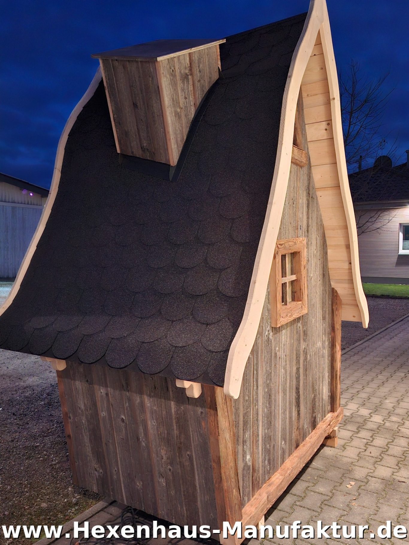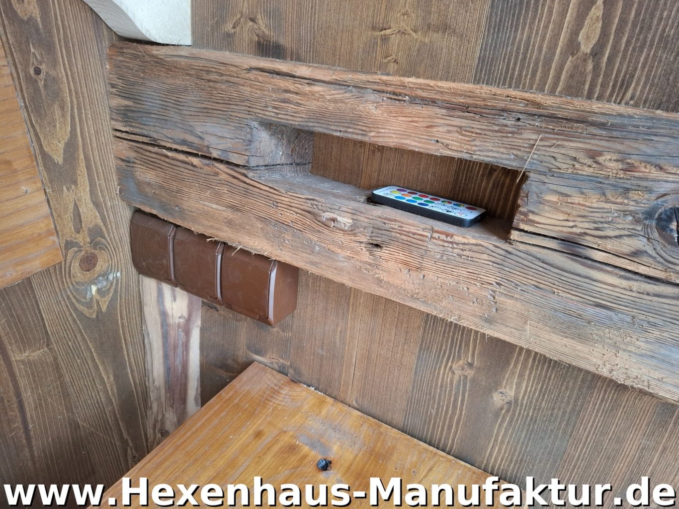 - Hexenhäuschen 4,5m (inklusive 4 LED Spots, 3 Steckdosen und Kamin) lang ohne Bett oder Altholzbänke 4499 €