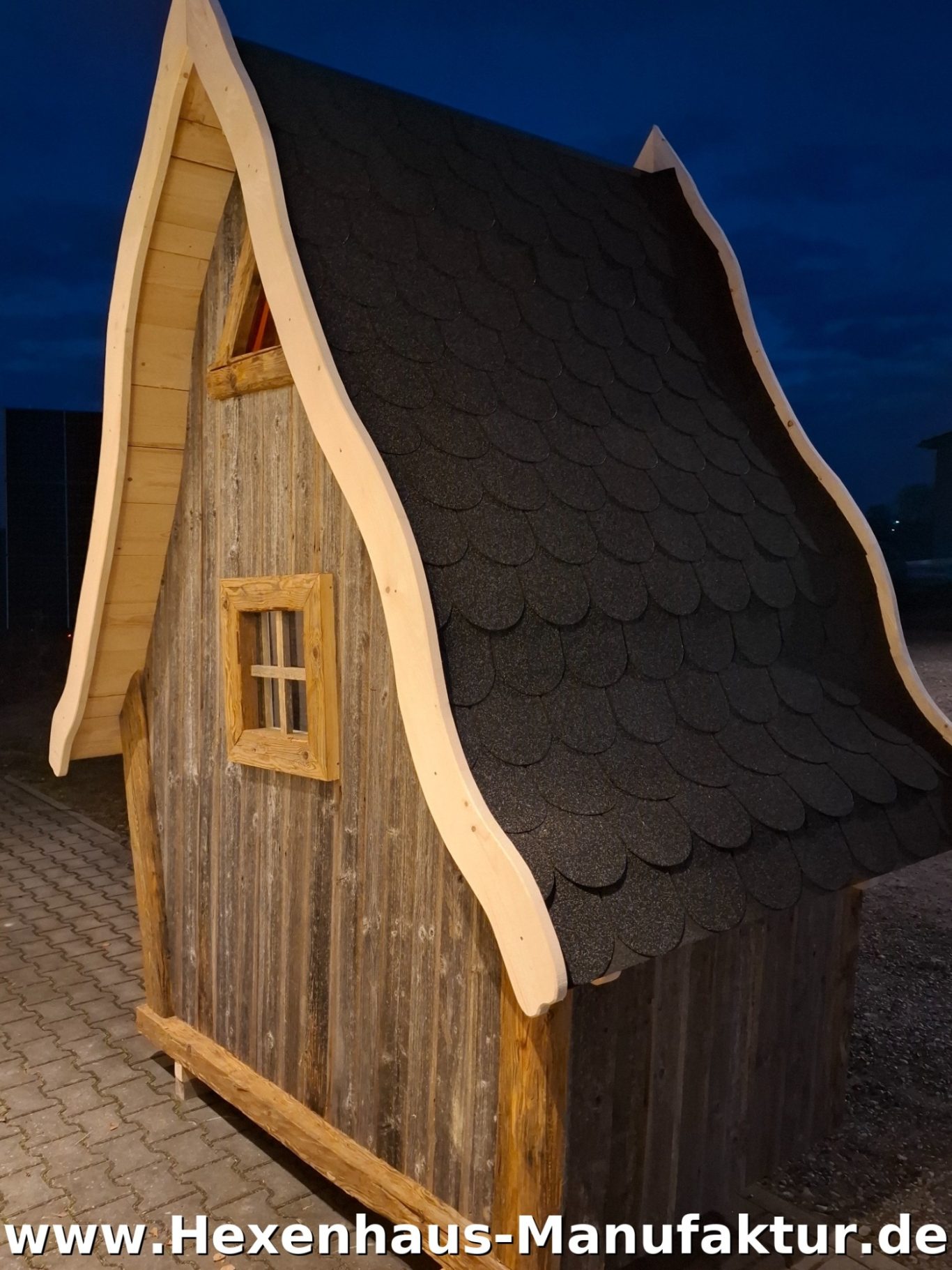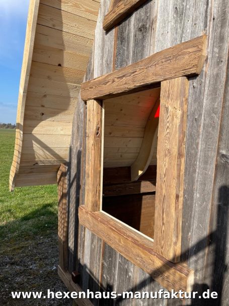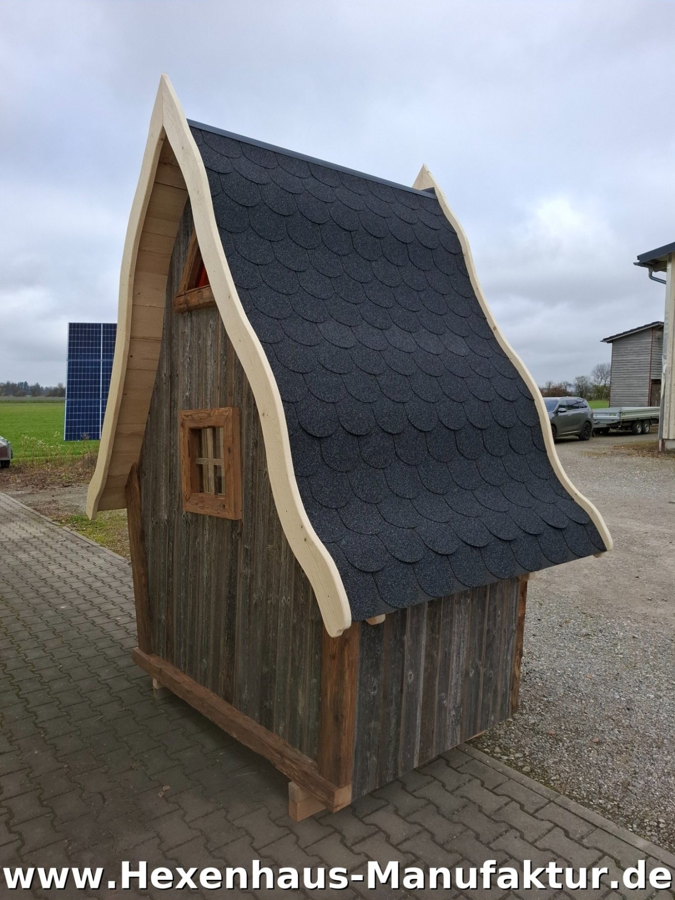 Die Bretter, die das Hexenhaus so besonders machen kommen von einem Stadel aus den Allgäuer Alpen welche ca. 40 Jahre der Witterung ausgesetzt waren. Sie bestechen durch ihre natürliche Farbgebung, die durch Witterungseinflüsse entstanden ist.