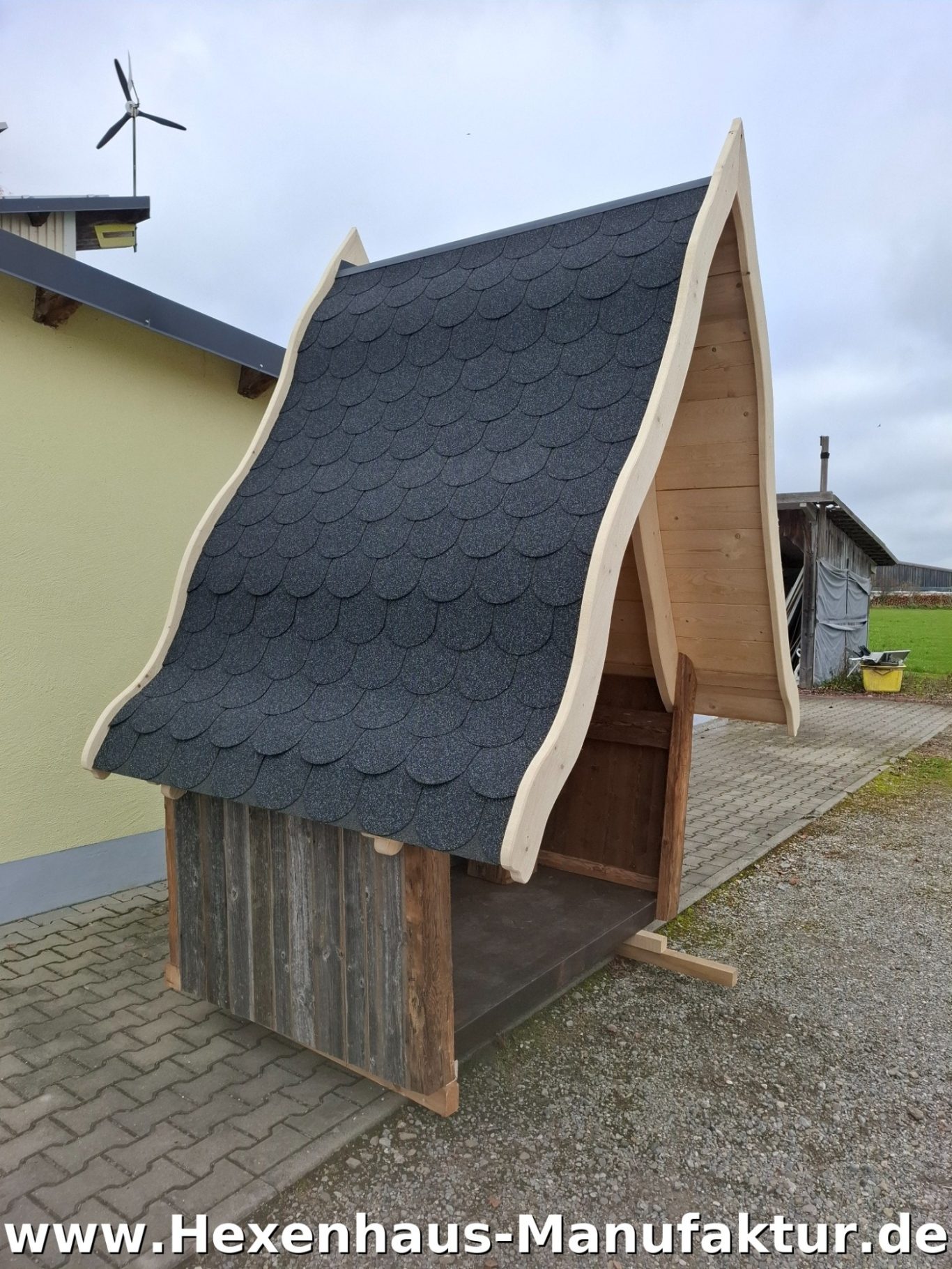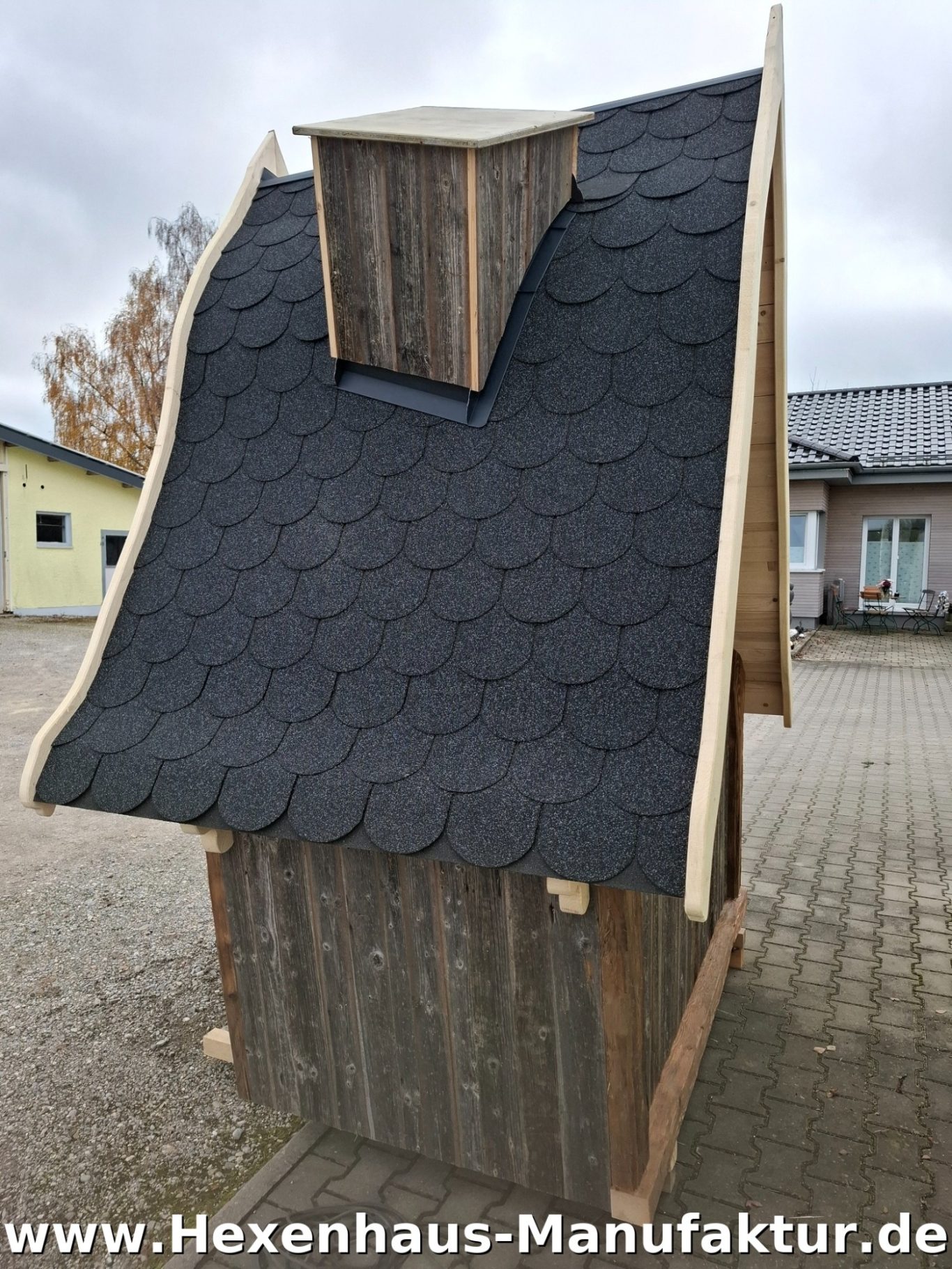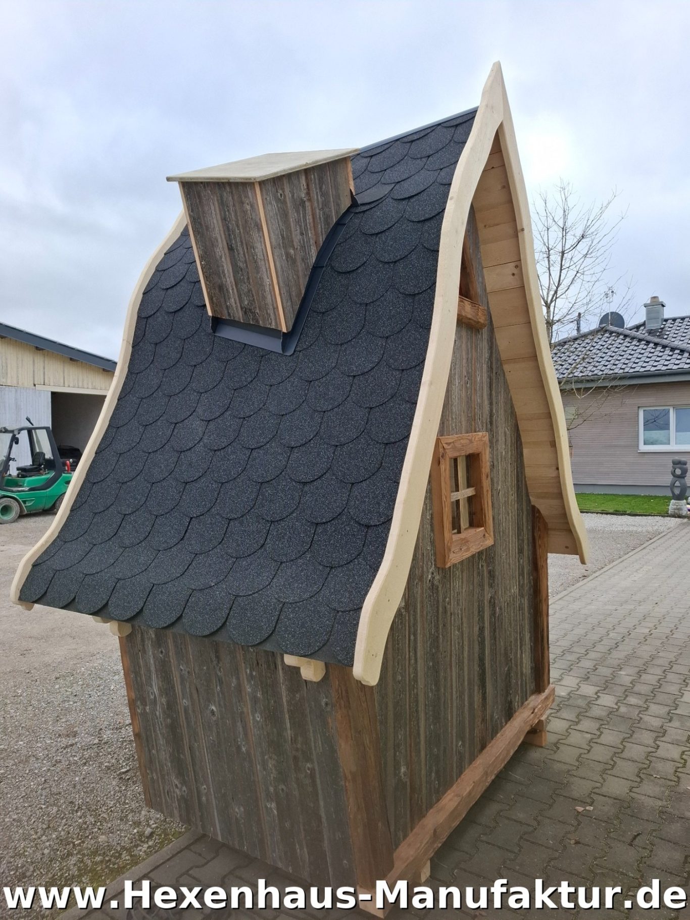 Die Bretter, die das Hexenhaus so besonders machen kommen von einem Stadel aus den Allgäuer Alpen welche ca. 40 Jahre der Witterung ausgesetzt waren. Sie bestechen durch ihre natürliche Farbgebung, die durch Witterungseinflüsse entstanden ist.