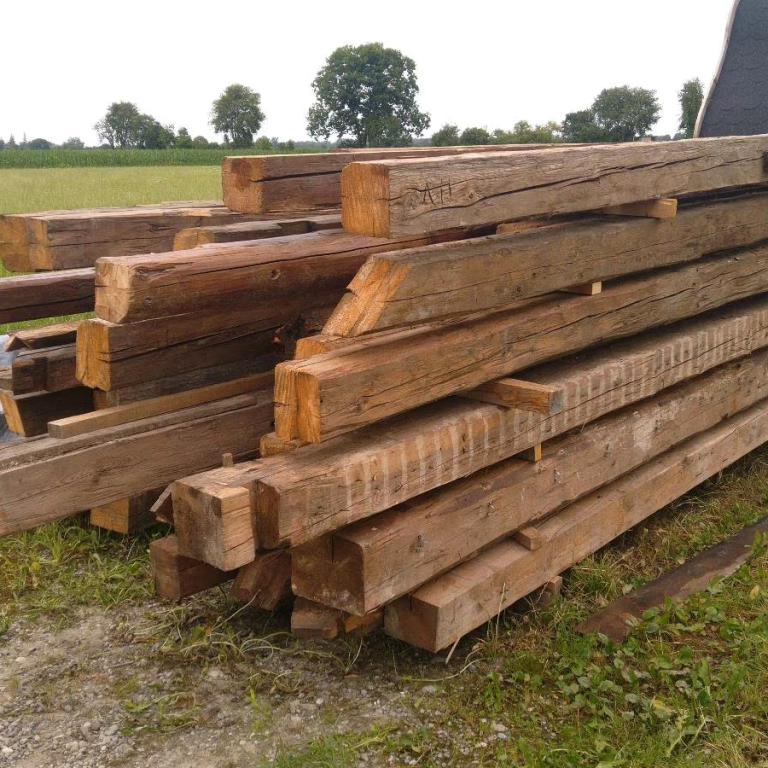 Auch die Holzbalken im Außenbereich sind handgeschlagenes Altholz, das über 100 Jahre trocken und geschützt in Gebäuden wie alten Gaststätten oder Wohnhäusern verbaut war und nun ein zweites Leben erhält. Durch die traditionelle Bearbeitung – wie sie bis ins frühe 20. Jahrhundert üblich war – entsteht eine wunderschöne Oberfläche mit viel Charakter. Das ist einer der vielen Gründe, warum jedes Häuschen ein echtes Unikat ist.